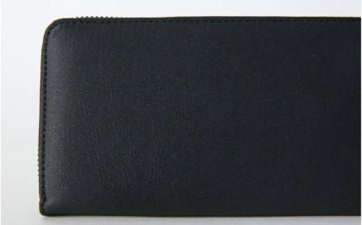 - レザー調生地ラウンドファスナー長財布 日本製(黒)