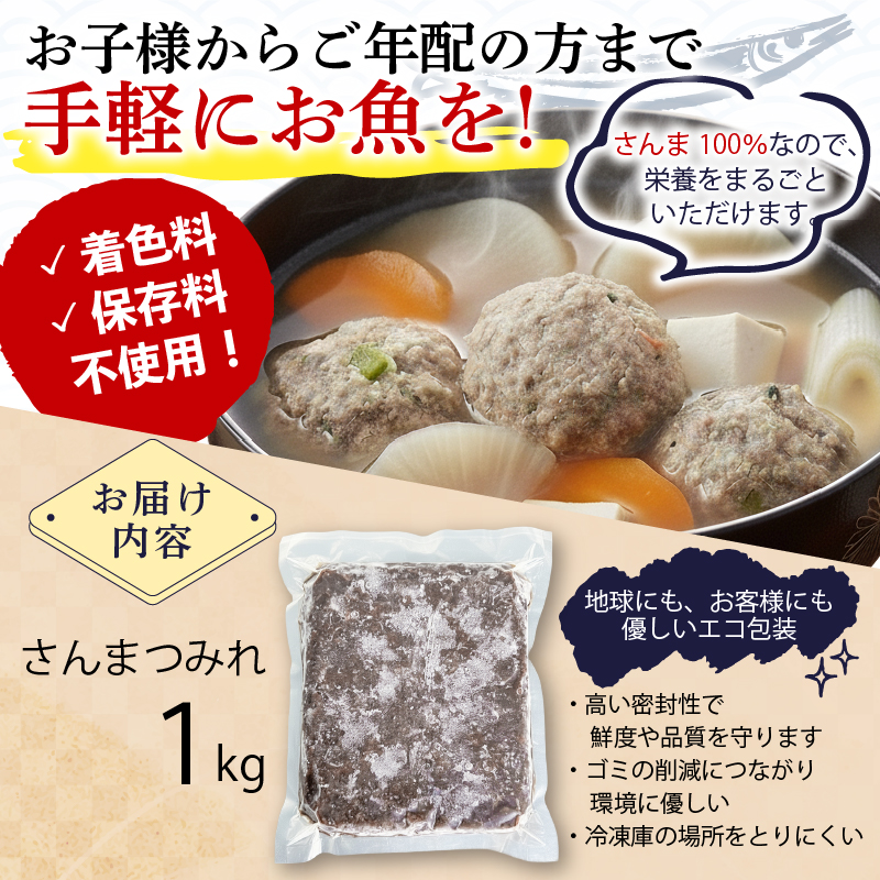 さんまつみれ 1kg 冷凍 秋刀魚 すりみ 100% さんま 簡単調理 味噌汁 健康 フライ おかず おつまみ 晩酌 米 丼 海産物 海鮮 魚介 魚介類 三陸 岩手県 大船渡市