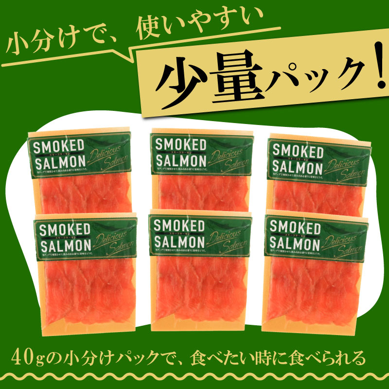 - サーモン スライス 40g×6パック 小分け ( 計 240g ) 冷凍 鮭 サケ 魚 スモークサーモン トラウトサーモン 岩手県 大船渡市