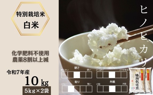 <令和7年産>佐賀県産特別栽培米ヒノヒカリ 白米10㎏(化学肥料不使用・農薬8割以上減)[A0212-0008]