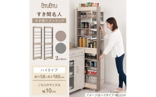 - 【完成品+設置付き】すき間 ワゴンラック ハイタイプ 幅10cm (グレー)キッチン 隙間収納 キャスター付き キッチンワゴン スリム 収納 キッチン隙間ワゴン キッチン隙間家具 ラック キッチン収納 KKONRA945070-10-GY