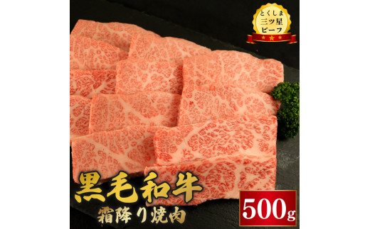 牛肉 黒毛和牛 焼肉用 500g 霜降り とくしま三つ星ビーフ 冷凍 お祝い 誕生日 記念日 ギフト 贈答 プレゼント お取り寄せ グルメ 送料無料 徳島県 阿波市 肉の藤原