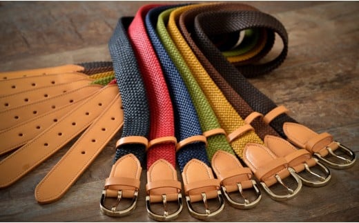 - [P027] 組紐ベルト「kumeemo」レザーコンビ(30mm) ライトグリーン