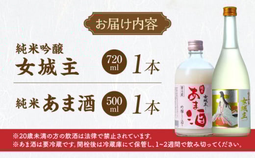 日本酒 女城主 純米吟醸(720ml)とあま酒(500ml)セット / 純米吟醸 甘酒 日本酒 女城主 地酒 銘酒 清酒 高級酒 アルコール 米麹 米糀 あまざけ ノンアルコール 飲料 ノンシュガー 砂糖不使用 セット 20歳 ハタチ 酒造 醸造 酒蔵 老舗 老舗酒蔵 お取り寄せ 贈答 ギフト お祝い 恵那市産 岐阜県 / 恵那市 / 岩村醸造 [AUAK004]