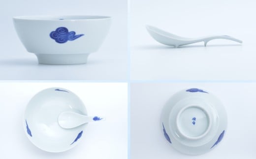 - 【有田焼】究極のラーメン鉢 レンゲセット(古染雲)[A0033-0038]