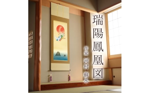 - 掛け軸「瑞陽鳳凰図」 河村蘇水 尺五立 サイズ:54.5×190cm 桐箱付 掛け軸 和室 おしゃれ 日本画 表装 床の間