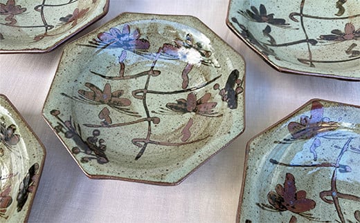 - 絵唐津 松梅文 8角 向付 5客組 器 | 陶器 窯元 和食器 焼き物【絵唐津松梅文8角向付 5客組】日本製 縁起物 伝統工芸 ギフト 贈答 _h-16