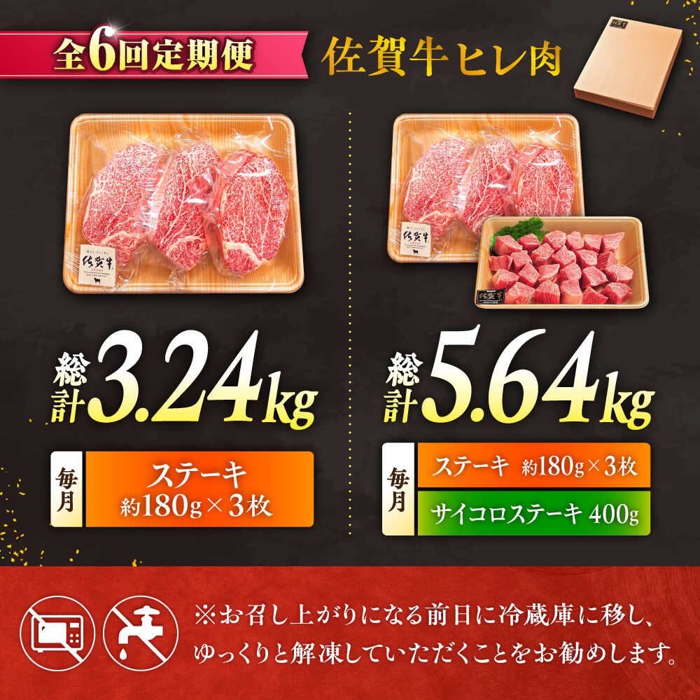 【ふるさと納税】【全6回定期便】佐賀牛 赤身 希少部位 ヒレ ( ステーキ 3枚 or ステーキ+ サイコロステーキ400g セット ) | 牛肉 焼肉 和牛 ブランド牛 |吉野ヶ里町/やま田商店[FCH021/FCH027]