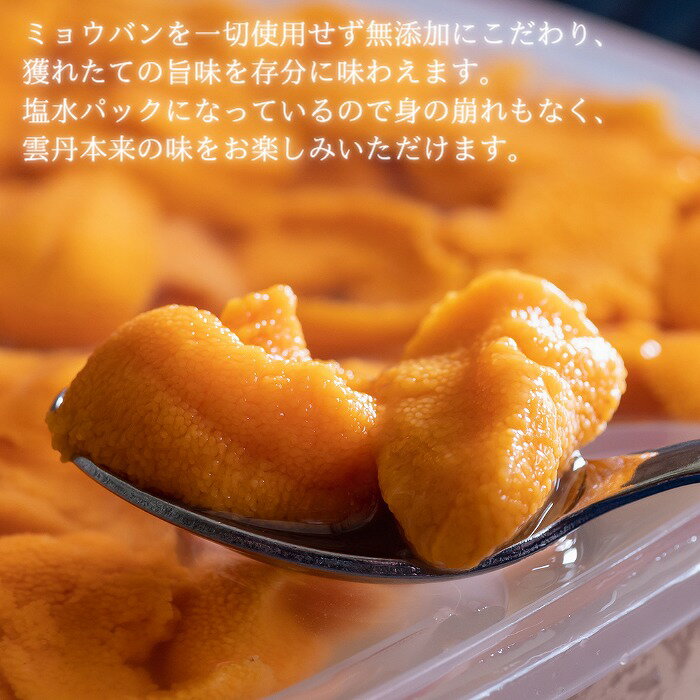 \2026年先行予約/北海道 江差前浜産 生うに 100g【天然・無添加・みょうばん不使用】令和8年 江差産キタムラサキウニ 日本海熊石産海洋深層水 塩水ウニ 素材を生かした自然の味 国産うに 雲丹 100グラムパック個包装