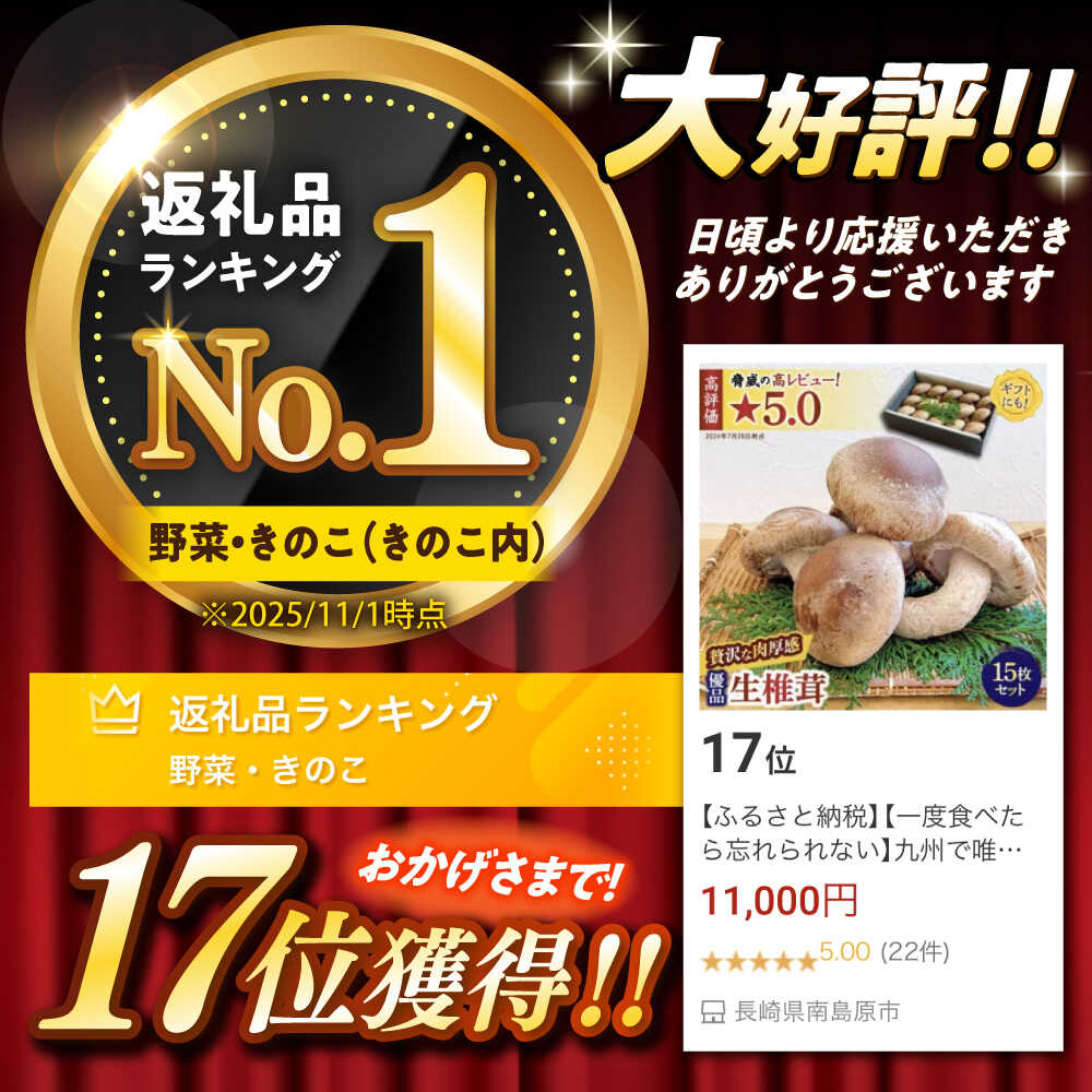 【ふるさと納税】【一度食べたら忘れられない】九州で唯一! 希少な生椎茸 【優品】15枚セット / しいたけ 椎茸 生しいたけ 生シイタケ きのこ キノコ 茸 / 南島原市 / サンエスファーム [SBX003]