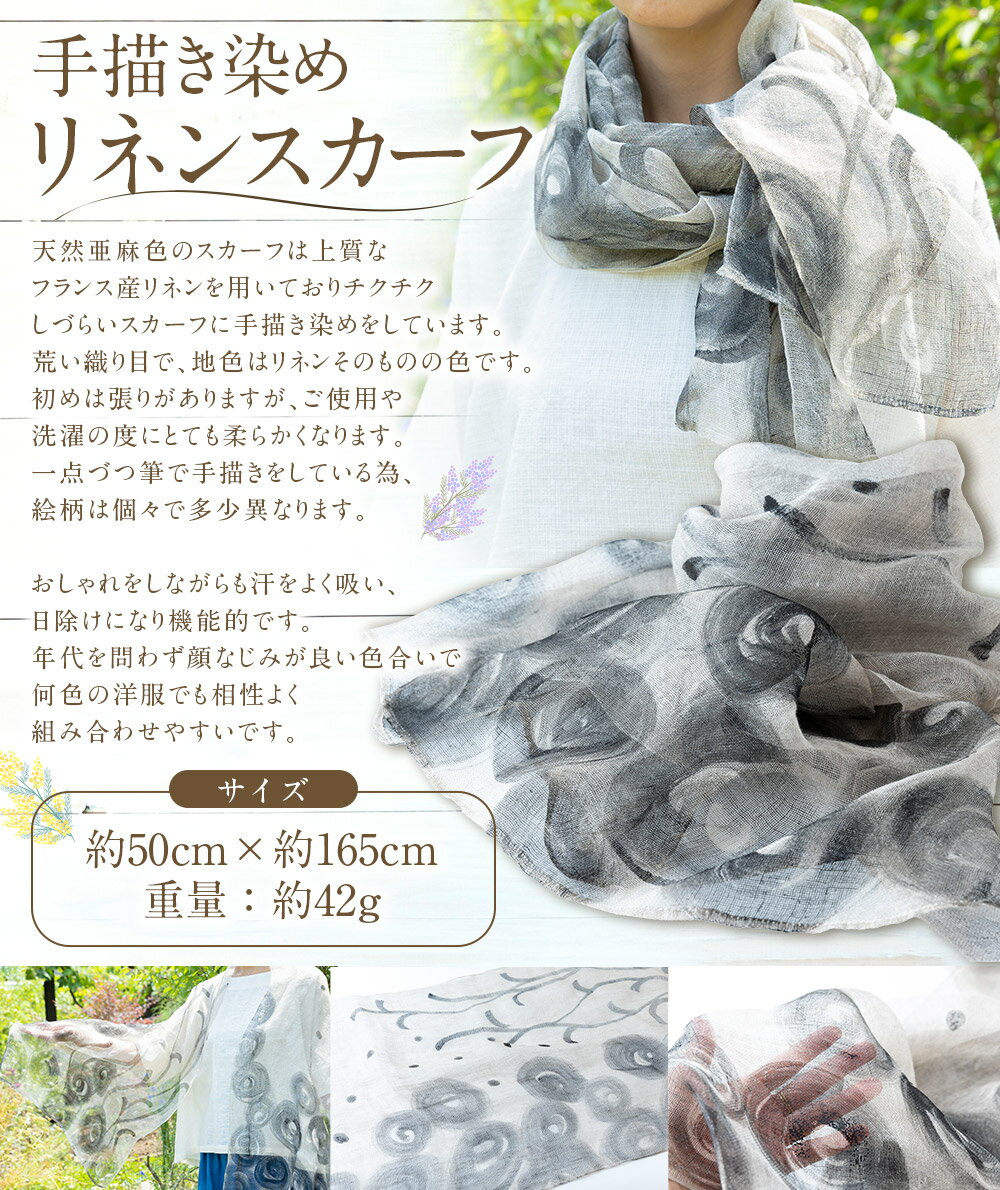 - 【ふるさと納税】 陶・染 きとゆ工房 手描き染めリネンスカーフ(約50cm×約165cm)麻100% 天然亜麻色 日除け 機能的 ファッション 送料無料 福岡県 うきは市