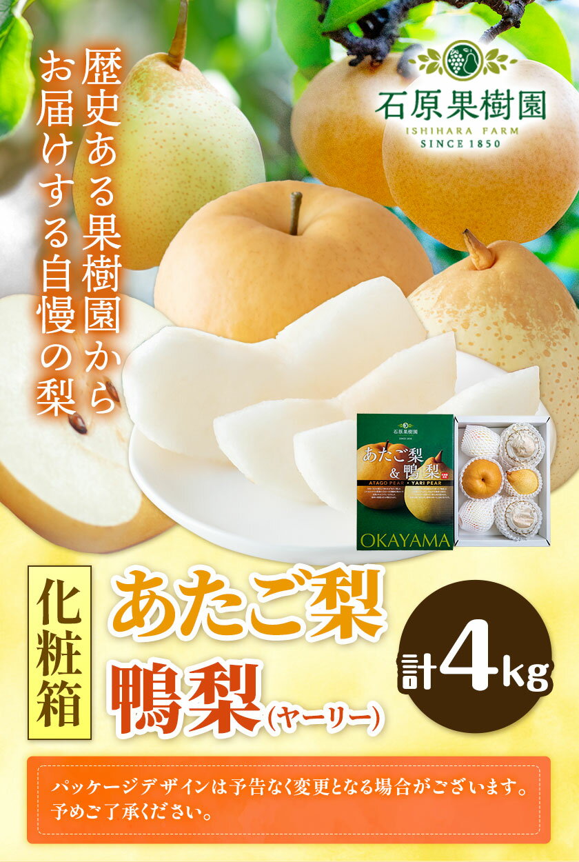 - 【ふるさと納税】【先行予約】梨 なし 梨 旬 あたご梨 鴨梨 詰め合わせ 計約4kg 化粧箱 石原果樹園 《2026年11月中旬-12月下旬頃より発送予定》岡山県 浅口市 果物 フルーツ 梨 詰め合わせ