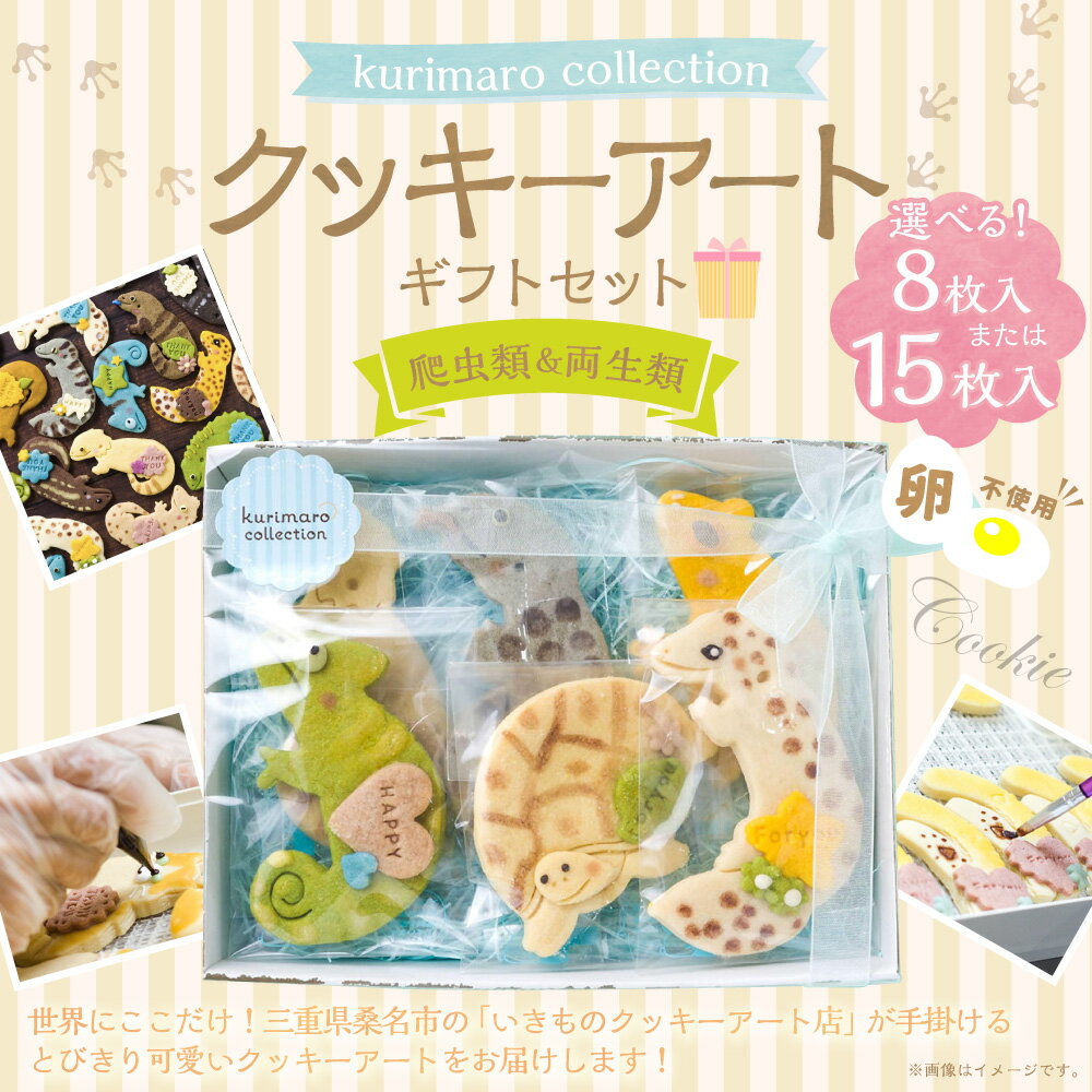 【ふるさと納税】<選べる内容量> 【卵不使用】 kurimaro collection 爬虫類・両生類クッキーアートギフトセット 8枚入 / 15枚入 かわいい 可愛い 小麦100% ひよこ豆の煮汁 天然塩 合成着色料不使用 お菓子 焼菓子 スイーツ デザート おやつ 三重県 桑名市 送料無料