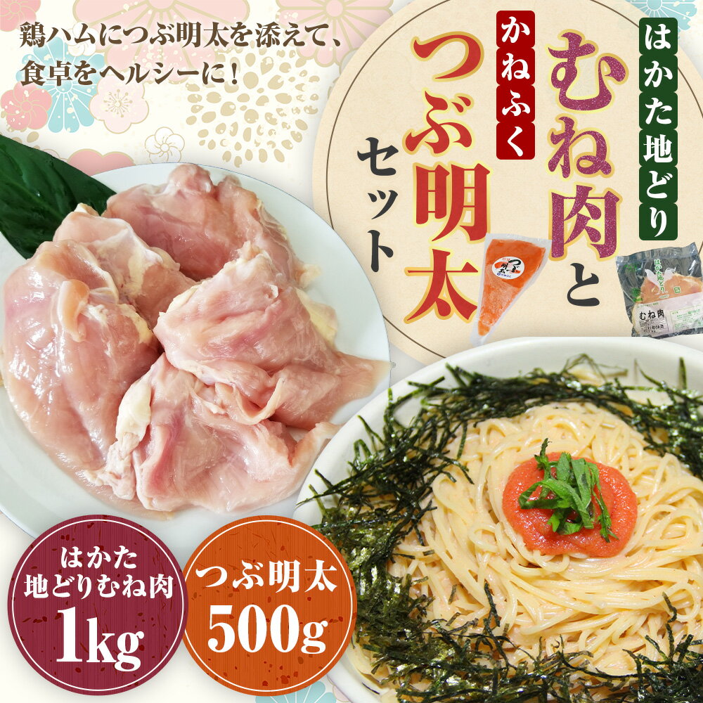 - 【ふるさと納税】はかた地どりむね肉(1kg)・つぶ明太(500g) セット 合計1.5kg 地鶏 鶏肉 お肉 ムネ肉 明太子 めんたいこ 魚卵 魚介類 水産物 ごはんのお供 ご飯のお供 おかず 冷凍 福岡県 糸田町 送料無料