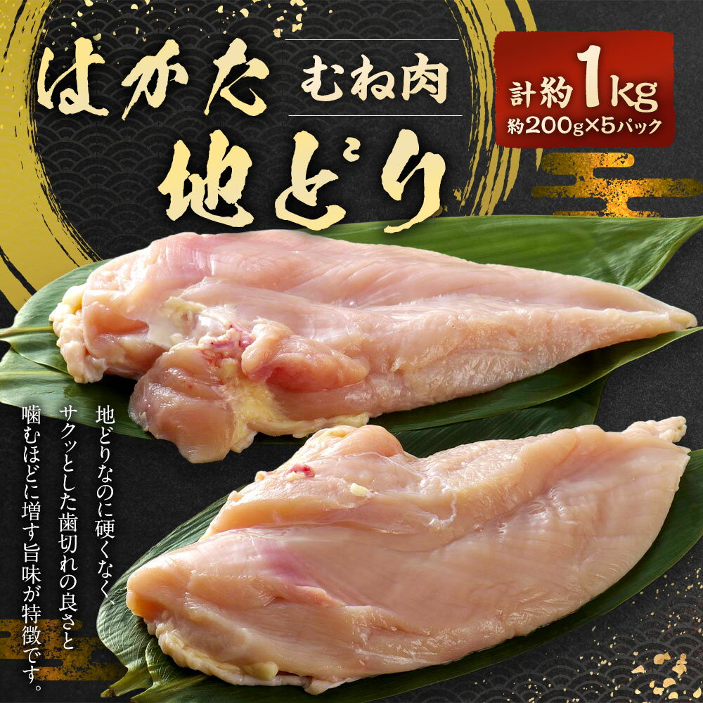 【ふるさと納税】はかた地どり むね肉 計1kg(200g×5パック) 小分け 鶏肉 お肉 ムネ肉 料理 冷凍 博多 福岡県産 国産 福岡県 太宰府市 送料無料