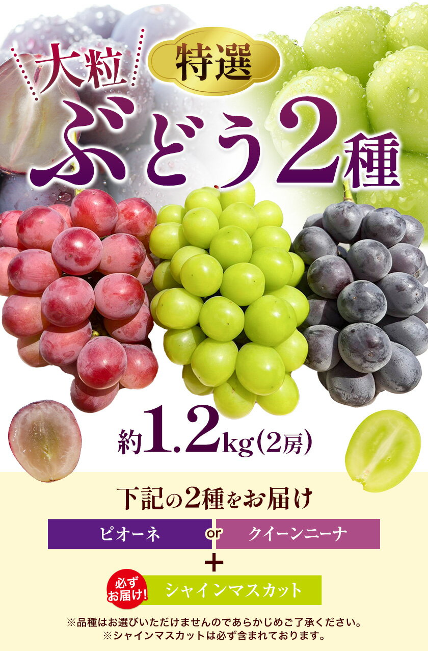 - 【ふるさと納税】特選 大粒 ぶどう 2種 セット 約1.2kg ( 2房 ) シャインマスカット + ピオーネ or クイーンニーナ 株式会社日本植生グループ本社 NISSHOKU FARM《9月下旬-12月末頃出荷》ブドウ 送料無料 岡山県 浅口市 【配送不可地域あり】 (離島)