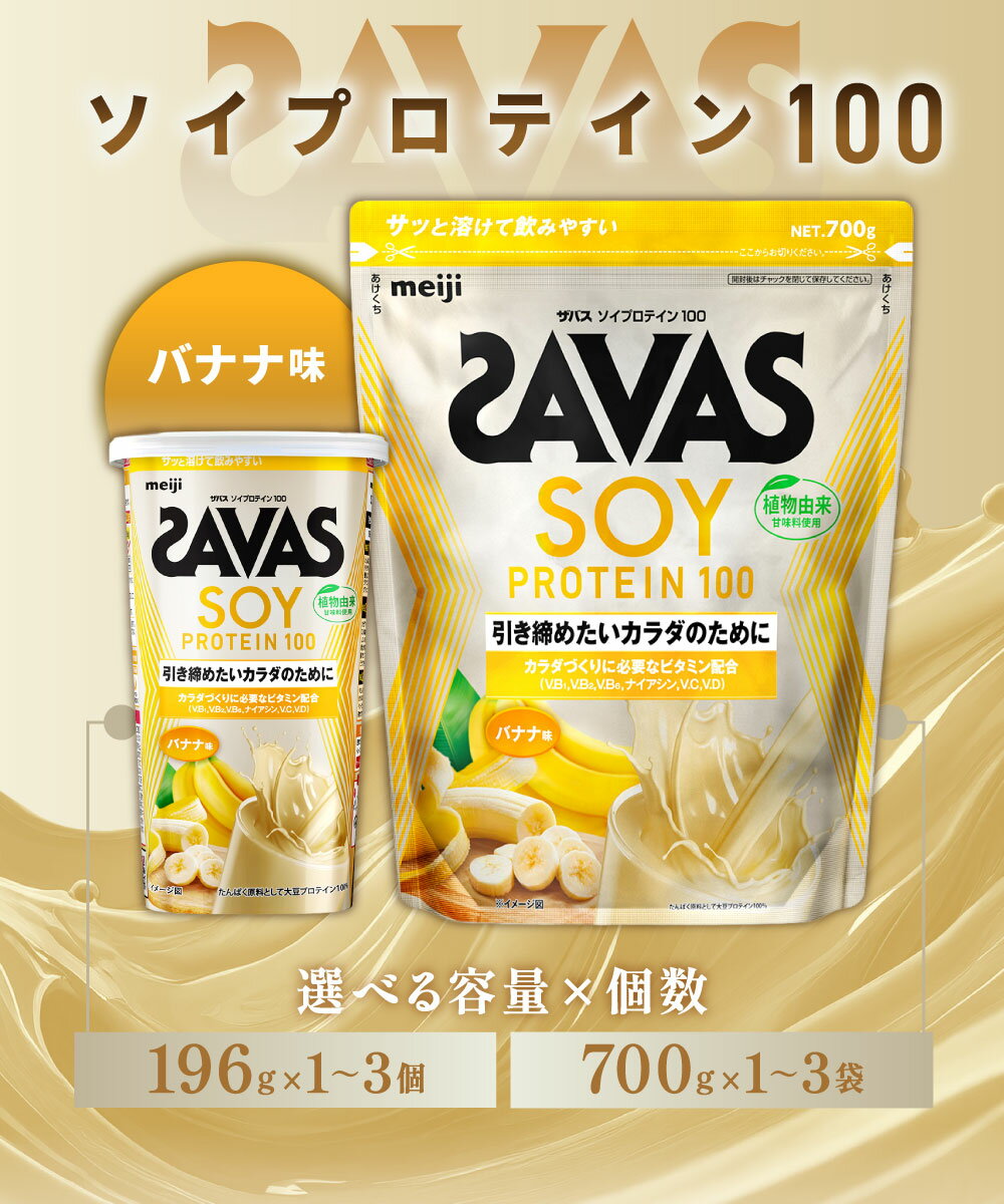 - 【ふるさと納税】ソイプロテイン100 バナナ味 <選べる内容量> 1個(196g) / 2個(計392g) / 3個(計588g) / 1個(700g) / 2個(計1.4kg) / 3個(計2.1kg) 大豆プロテイン レーニング 筋トレ 運動 カラダづくり たんぱく質 飲料 ドリンク 健康食品 送料無料