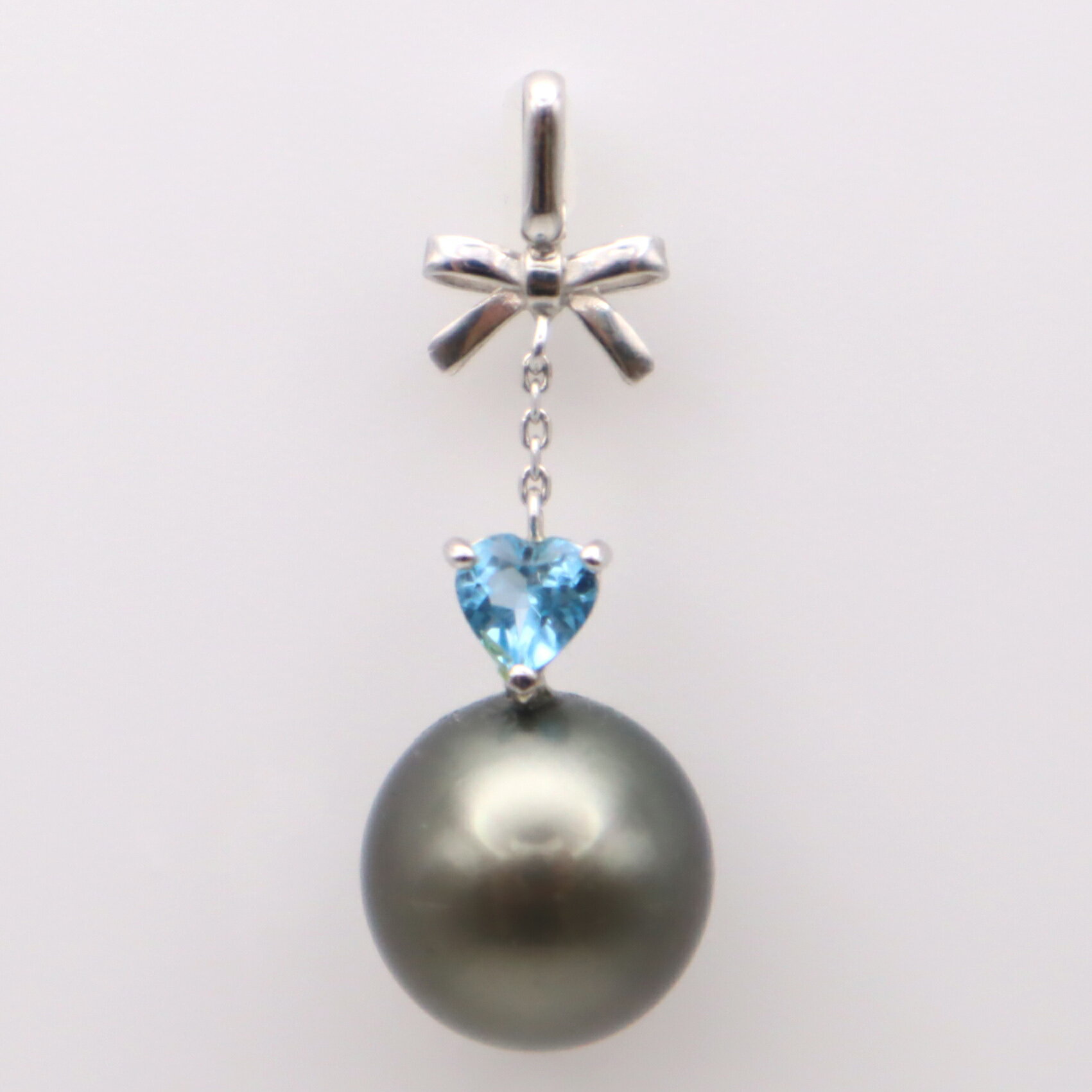 【ふるさと納税】1937 K14WG タヒチ黒蝶真珠10.2mm ハートシェープブルートパーズ ペンダントトップ サービスチェーン付