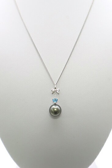 - 【ふるさと納税】1937 K14WG タヒチ黒蝶真珠10.2mm ハートシェープブルートパーズ ペンダントトップ サービスチェーン付