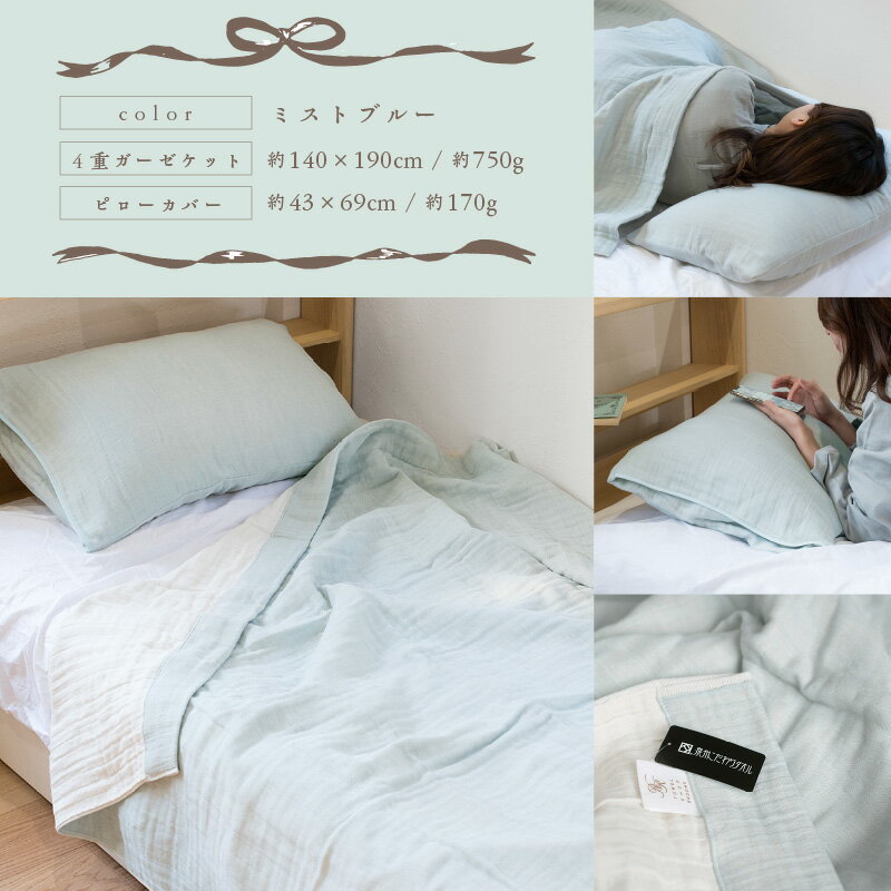 - 【ふるさと納税】sasara 4重ガーゼケット+ピローカバーセット 選べるカラー ナチュラル / ミストブルー