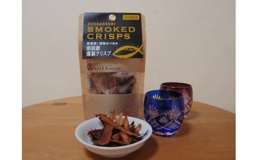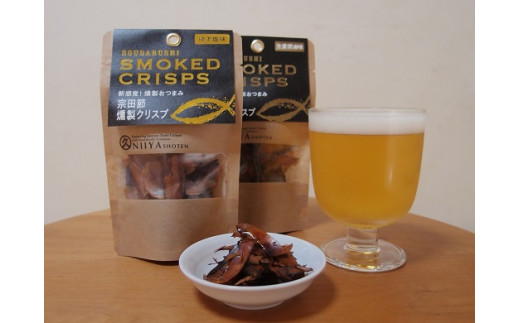 - おつまみ3点セット:宗田節燻製クリスプ2種(ゆず塩味・生姜醤油味)×さば燻製1P おつまみ フィレ おかず 惣菜 スモーク かつお節のチップス スナック菓子 おやつ【R01582】