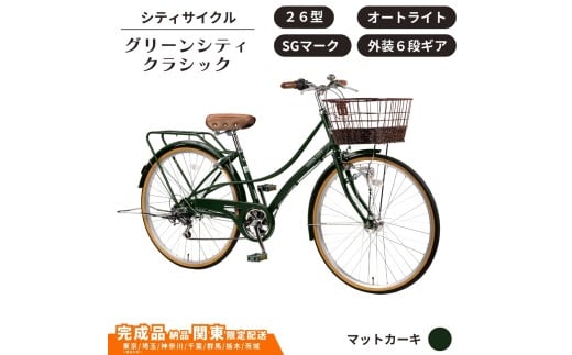- 自転車 シティサイクル 26型 グリーンシティクラシック 外装6段変速 オートライト ローラーブレーキ [マットカーキ] 通学自転車 通勤自転車 26インチ 配送エリア 関東限定 東京 埼玉 神奈川 千葉 群馬 栃木 茨城 完成品納品 一都六県限定配送