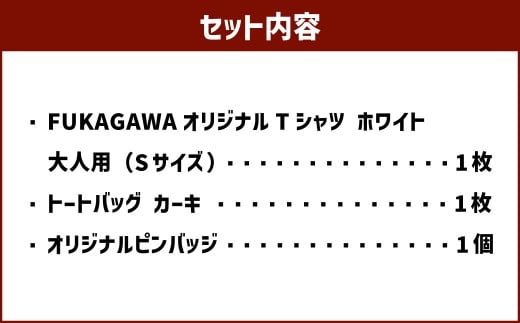 【トートバック:カーキ×Sサイズ】FUKAGAWAオリジナルTシャツ ホワイト(大人用)・トートバック・オリジナルピンバッチセット シャツ Tシャツ 服 ピンバッチ バック トートバッグ 北海道 深川市