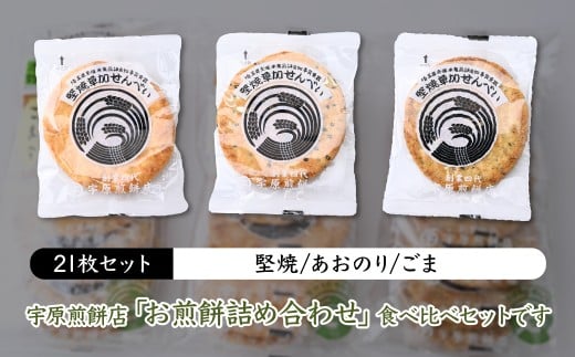 - <3種合計21枚 >簡易包装 お煎餅詰め合わせセット| 草加煎餅 草加せんべい 宇原煎餅店 宇原煎餅 堅焼き煎餅 かたやき煎餅 かたやきせんべい 硬いせんべい 伝統 お土産 自宅用 簡易包装 お試し 青のり 海老 ごま せんべい 煎餅 草加市 埼玉県