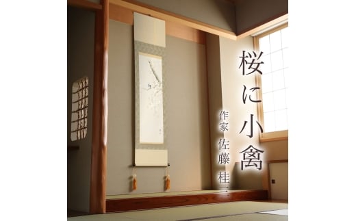 掛け軸「桜に小禽」 佐藤桂三 半切立 サイズ:47×190cm 桐箱付 掛け軸 和室 おしゃれ 日本画 表装 床の間
