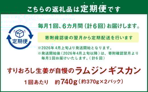 - 【6回定期便】 すりおろし生姜が自慢のラムジンギスカン (約370g×2パック) 【2026年4月上旬から順次発送予定】
