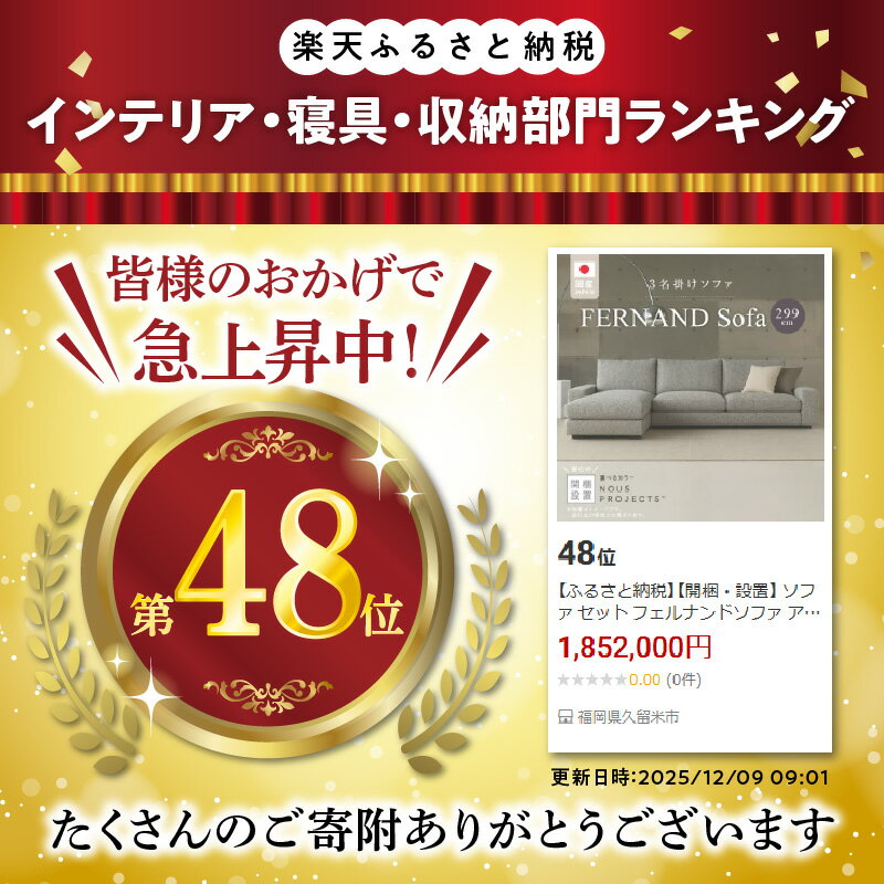 - 【ふるさと納税】【開梱・設置】 ソファ セット フェルナンドソファ アーム 選べる カラー セレニティ サフィロス スモールフェザー 綿 ウレタン 家具 雑貨 福岡県 久留米市 お取り寄せ 送料無料