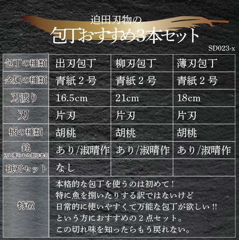 - 【ふるさと納税】 包丁 キッチン 用品 3点 セット 出刃包丁 柳刃包丁 薄刃包丁 日本三大刃物 土佐打ち刃物 青紙2号 高知県 須崎市