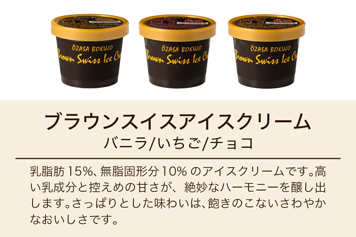 - 【ふるさと納税】大笹牧場 ブラウンスイス アイスクリーム 3種詰め合わせ (バニラ/いちご/チョコ) |アイス バニラ いちご チョコレート ギフト スイーツ デザート 詰め合わせ アソート おやつ 贈答 人気 春 夏 秋 冬 歳暮 中元 母の日 父の日 ギフト 日光 [0844]