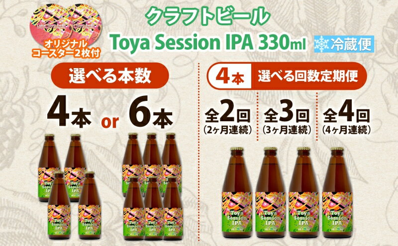 【ふるさと納税】洞爺湖 発 クラフトビール Toya session IPA 選べるお届け本数・回数 330ml×4本から コースター付き Toya session IPA Lake toya beer 酒 発泡酒 ビール アルコール 飲みやすい 地ビール 家飲み 宅飲み 晩酌 送料無料 北海道 洞爺湖町
