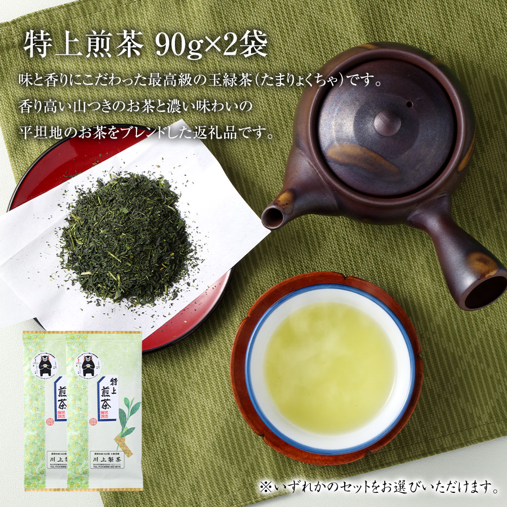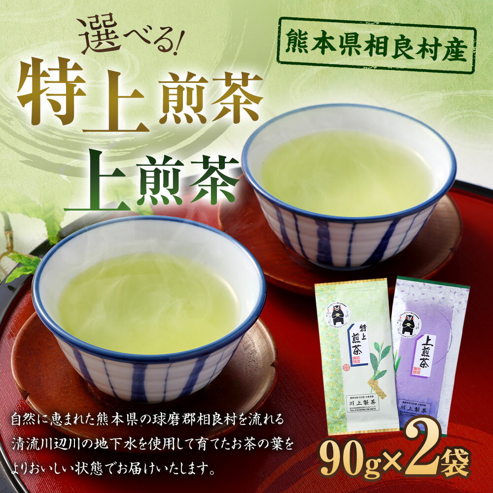 - 【ふるさと納税】<選べる セット>熊本県相良村産 特上煎茶 上煎茶 2袋セット 1袋あたり90g 計180g 緑茶 日本茶 お茶 茶葉 煎茶 九州産 熊本県産 国産 茶 相良村産 レターパックプラス 送料無料