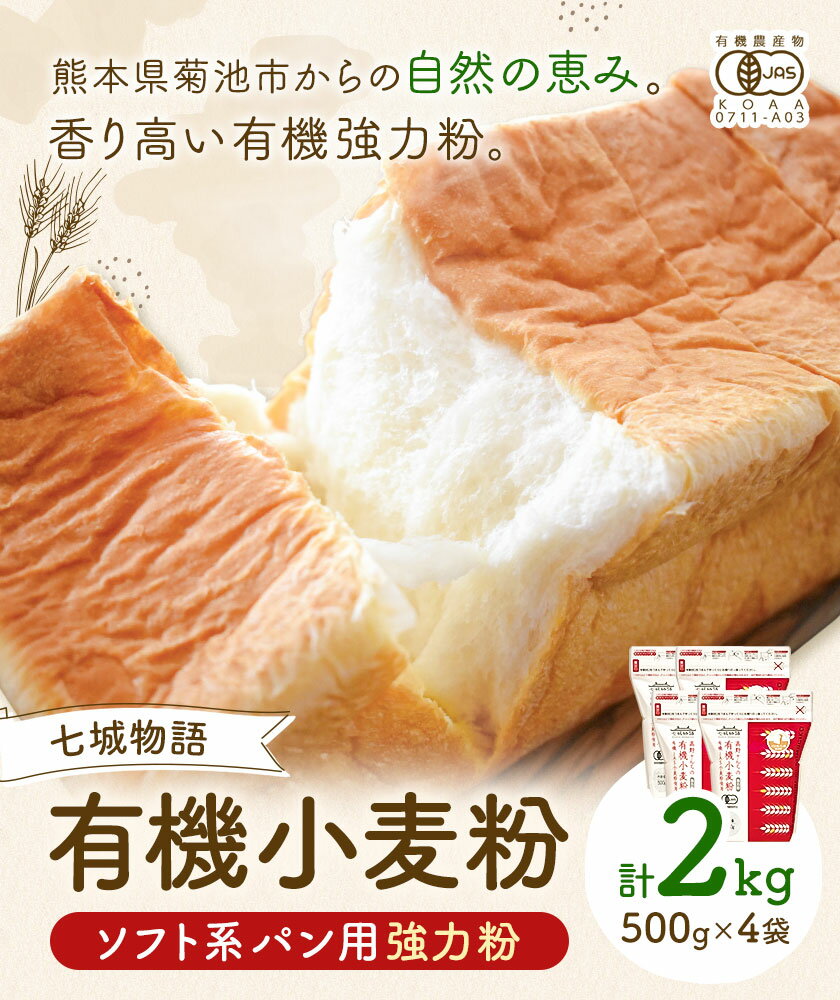 【ふるさと納税】七城物語 ソフト系パン用有機小麦粉 強力粉 合計2kg 500g×4パック 銀河のちから 七城物語 有機小麦粉 小麦粉 国産 九州産 熊本県産 送料無料《30日以内に出荷(土日祝を除く)》