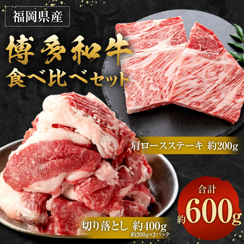 - 【ふるさと納税】博多和牛の食べ比べセット 約600g(切り落とし約200g×2パック+肩ロースステーキ約200g)博多和牛 国産 和牛 牛肉 ロース ステーキ 食べ比べ 切落とし 九州産 福岡県産 冷凍 送料無料