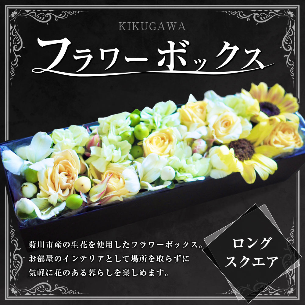 - 【ふるさと納税】【生花】【フラワーボックス】KIKUGAWA FlowerBox (long square) 1箱 フラワーギフト 季節の花 誕生日 お祝い 記念日 結婚祝い インテリア グリーン ハーブ 冷蔵 静岡県 菊川市 送料無料
