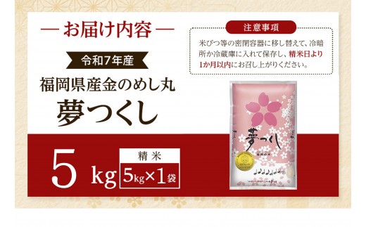 - <令和7年産>『定期便3回』福岡県産金のめし丸夢つくし 5kg(5kg×1袋)
