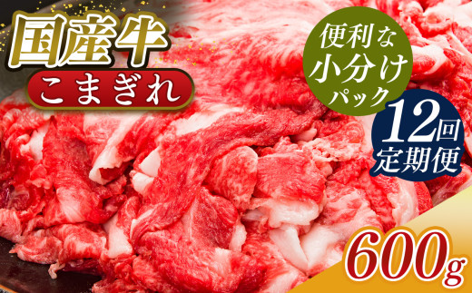 - 【 定期便 12回 】 小分け 国産牛 こまぎれ 600g ( 300g x 2 ) | 肉 にく ニク お肉 牛肉 黒毛 和牛 赤身 国産 切り落とし バラ サーロイン ステーキ 盛合わせ 冷凍 奈良県 五條市 小間切れ 切落し 切り落とし牛 肉 牛肉 国産牛 牛丼 焼肉 冷凍発送 冷凍 タンパク質 たんぱく質 ビーフ うし ウシ 調理 お手軽 常備 使い切り ストック 料理 おかず