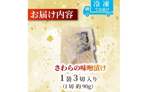 - 【先行予約】鰆の味噌漬け 3切れ さわら サワラ みそ味噌 漬け 切り身 漬け魚 和食 魚 焼き魚 西京漬け 冷凍 ふっくら 味噌の旨味 手仕込み 漬け込み 香ばしい ごはん 食卓 ご家庭 食欲 促進 国産 手造り 定食 焼くだけ 時短 家庭用 夕食 晩御飯 魚 魚類 真空パック ふっくら しっとり 甘め 濃すぎない 上品な味 簡単 おかず 簡単調理 末広飯店 風来坊 静岡 県 牧之原 市