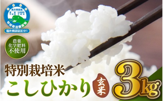 【令和7年産 】 特別栽培米コシヒカリ3kg 無農薬米 福井県認証区分1取得 越前町【白米】【3キロ お米 コメ 農薬化学肥料不使用 送料無料】 [e81-a003_01]