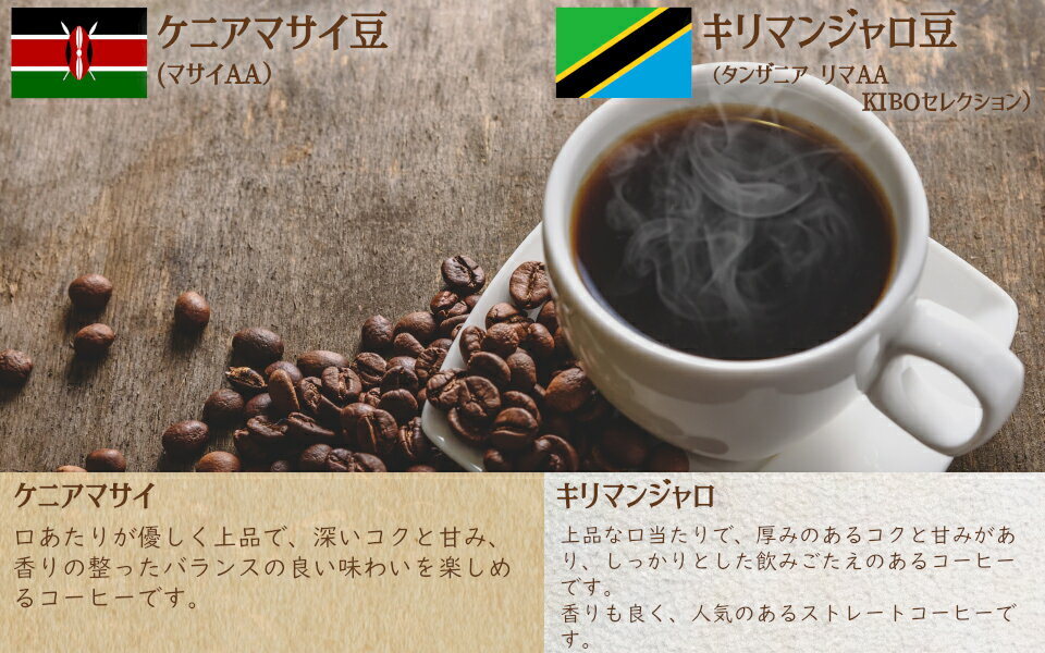 【ふるさと納税】上質アフリカのコーヒー豆の飲み比べ ケニアマサイとキリマンジャロ / 自家焙煎 中田コーヒー 奈良県 御所市