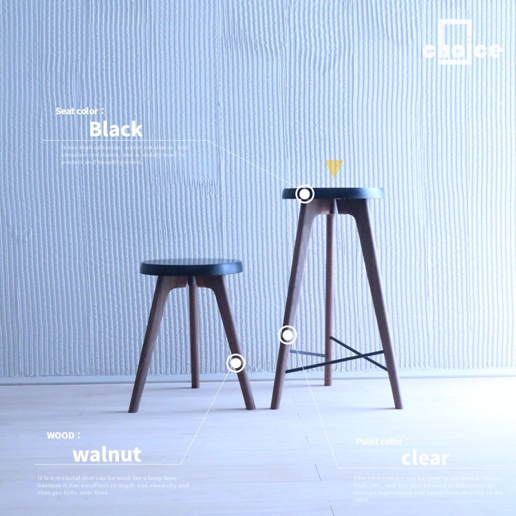 - 木製 スツール 椅子(天然木 ゴム&ウォールナット) Mサイズ ◇