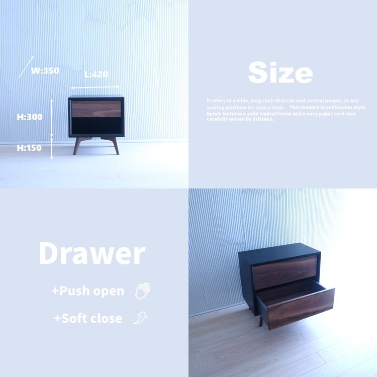 - 木製 サイドボード キャビネット ナイトテーブル (天然木 ウォールナット) ブラック BOX:S/LEG:S/1段 ◇