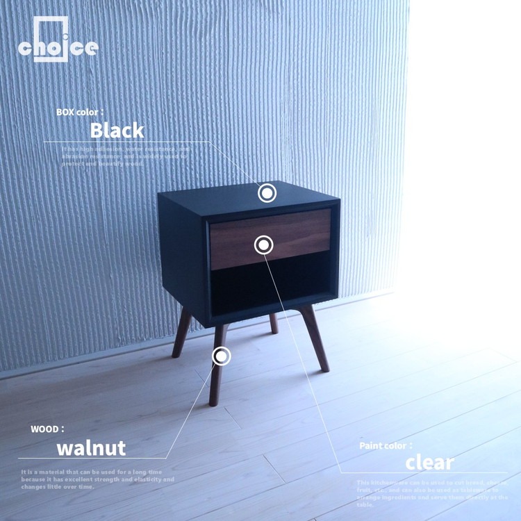 木製 サイドボード キャビネット ナイトテーブル (天然木 ウォールナット) ブラック BOX:S/LEG:S/1段 ◇