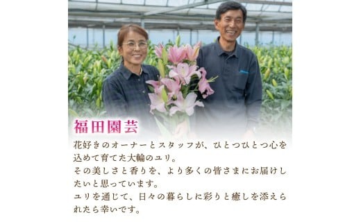 - ユリ オリエンタルリリー 選べる 5本 7本 10回定期便 花 花束 お花 ゆり プレゼント 贈答 ギフト 贈り物 誕生日 お祝い 母の日 父の日 供花 献花 お見舞い 植物 インテリア 季節限定 定期 つぼみ 大輪 ピンク 白 福田園芸 メッセージカード 高級 切り花 香り ブーケ ウェディング エレガント 優美 安芸市 高知県