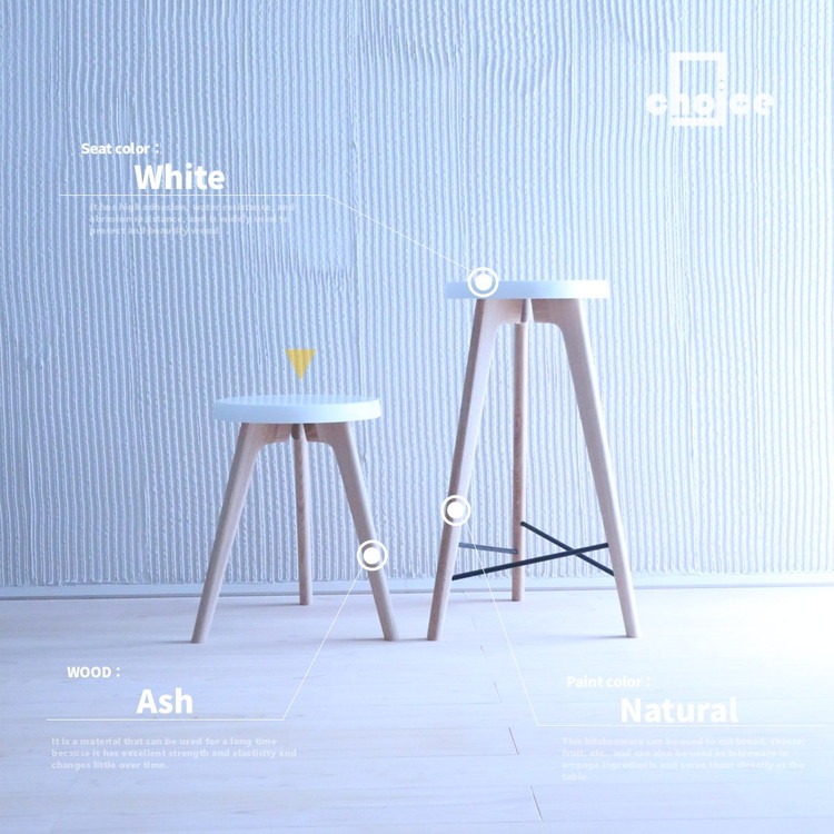 - 木製 スツール 椅子 (天然木 ゴム&タモ) Sサイズ ◇