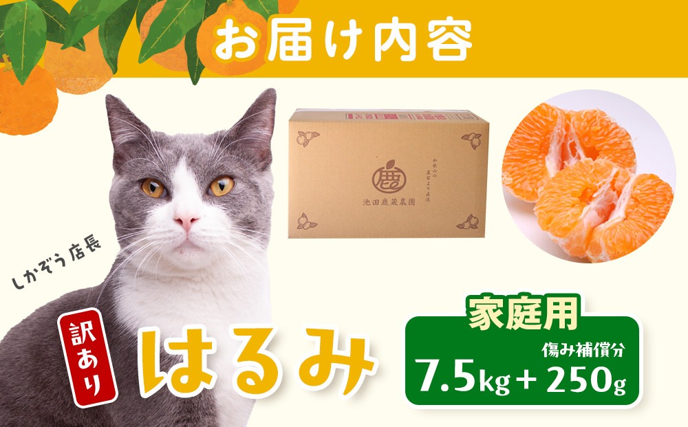 - [先行予約]家庭用 はるみ7.5kg+250g(傷み補償分)[デコポンの姉妹品種・新食感春みかん][光センサー選別][わけあり・訳あり] CZ096
