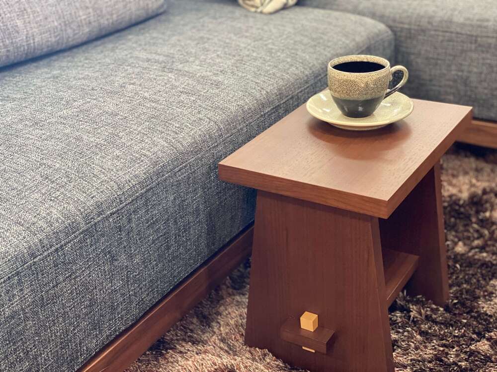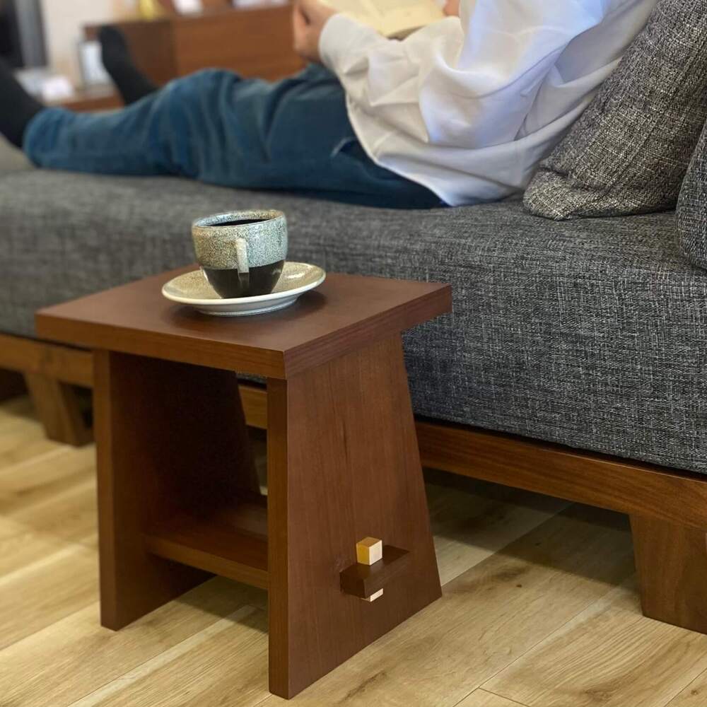 - テーブル SUWARU 椅子にもなるテーブル ウォールナット材 突板 日用品 木工品 おしゃれ インテリア イス いす 椅子 サイドテーブル ナイトテーブル スツール 藤枝家具 静岡県 藤枝市 [PT0047-000029]